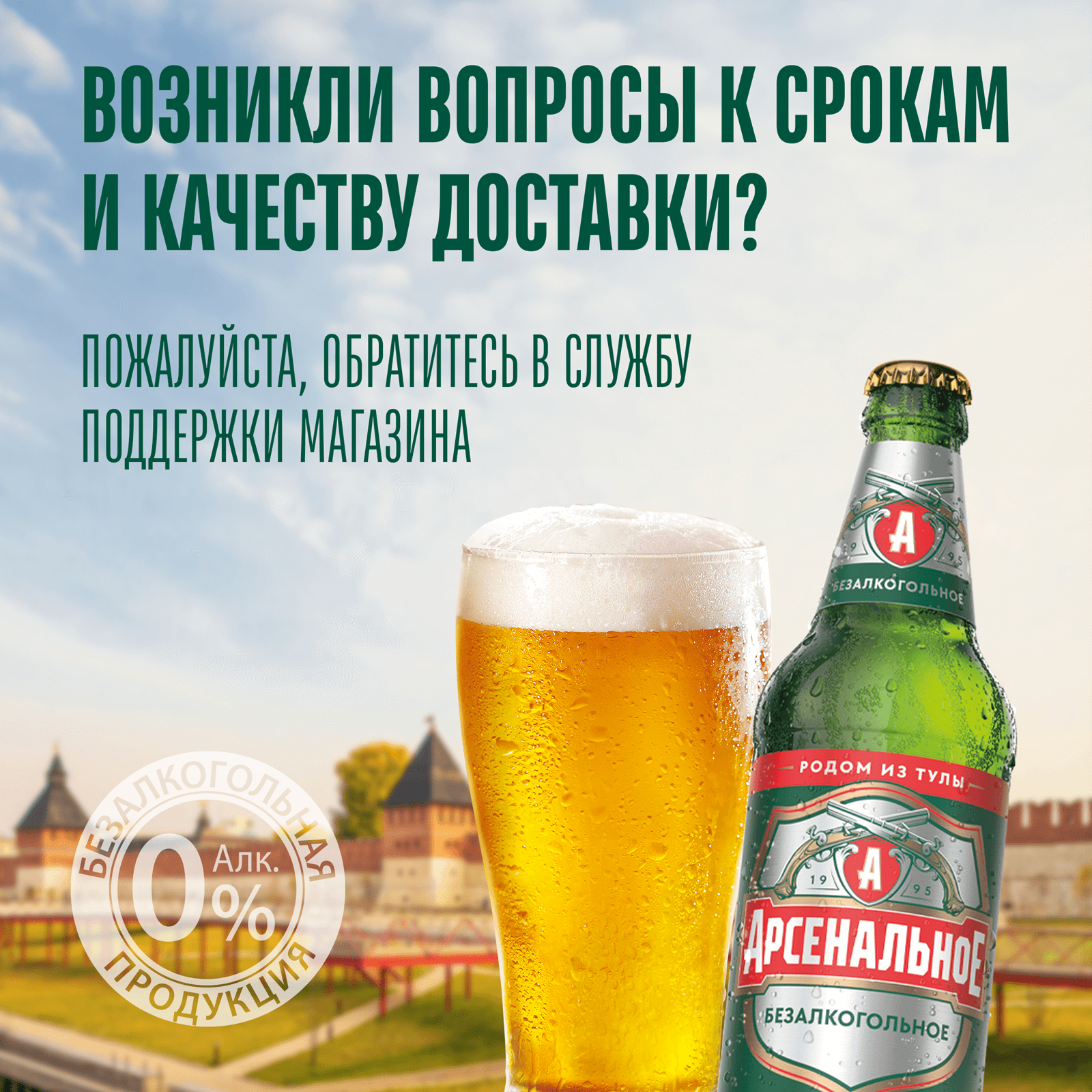 Пиво Арсенальное Безалкогольное Светлое, 20 шт. х 0,45 л, бутылка интересное: