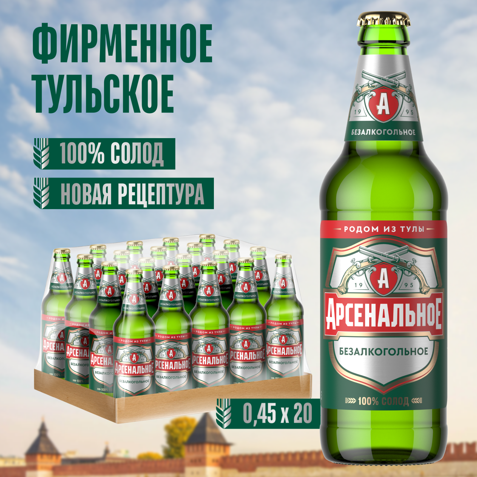 Купить Пиво Арсенальное Безалкогольное Светлое, 20 шт. х 0,45 л, бутылка