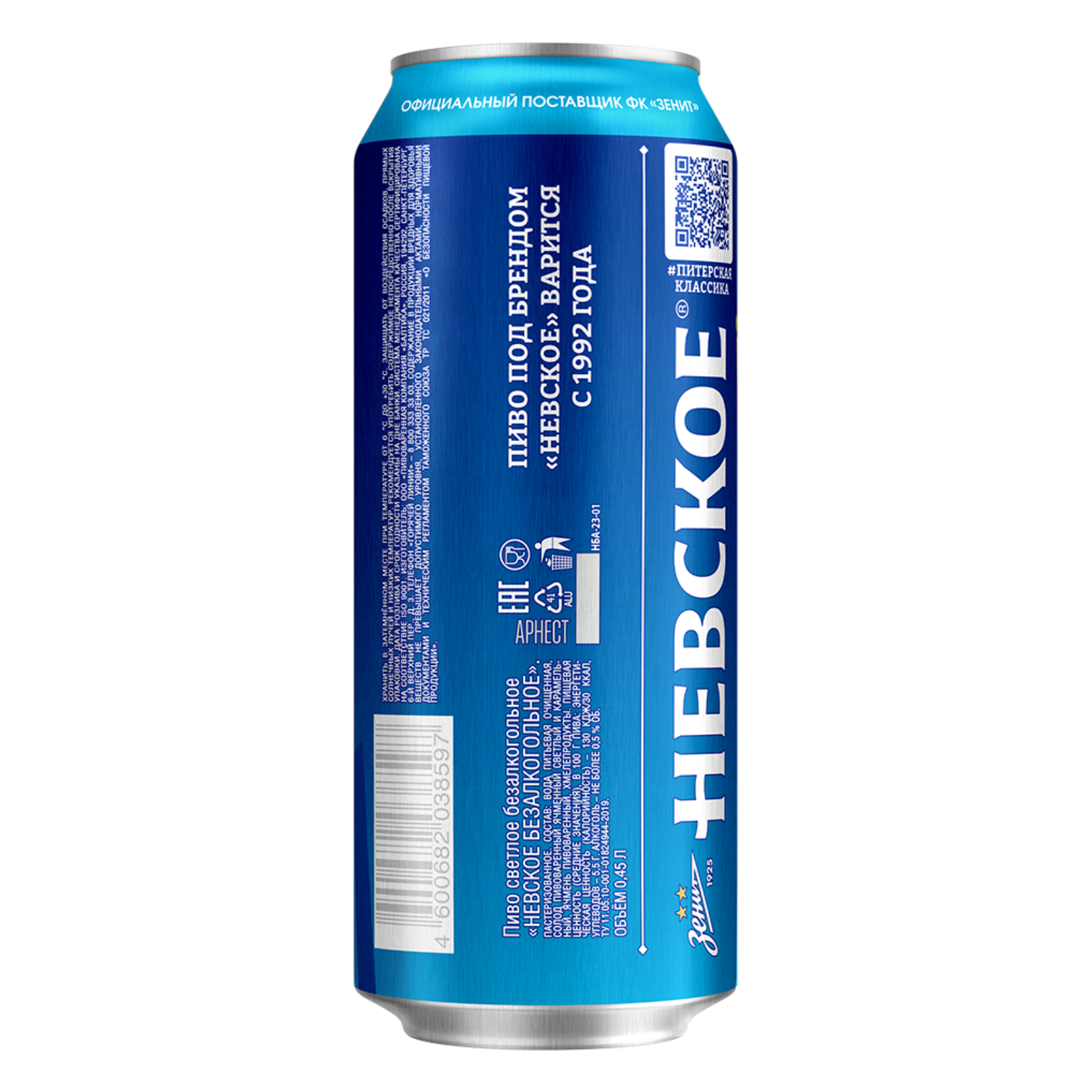 Пиво Невское х Зенит Безалкогольное Светлое, 24 шт. х 0,45 л, банка интересное: