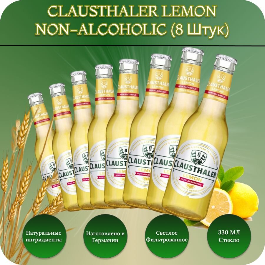 Clausthaler LEMON (Клаусталер Лимон) пиво светлое фильтрованное безалкогольное 0,33 л х 8 бут., стекло