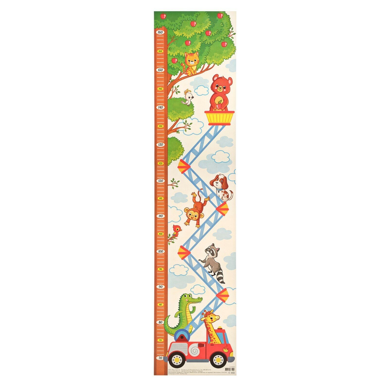 Купить !Ростометр "Зверята" дерево, подъемник, 99х22,5 см