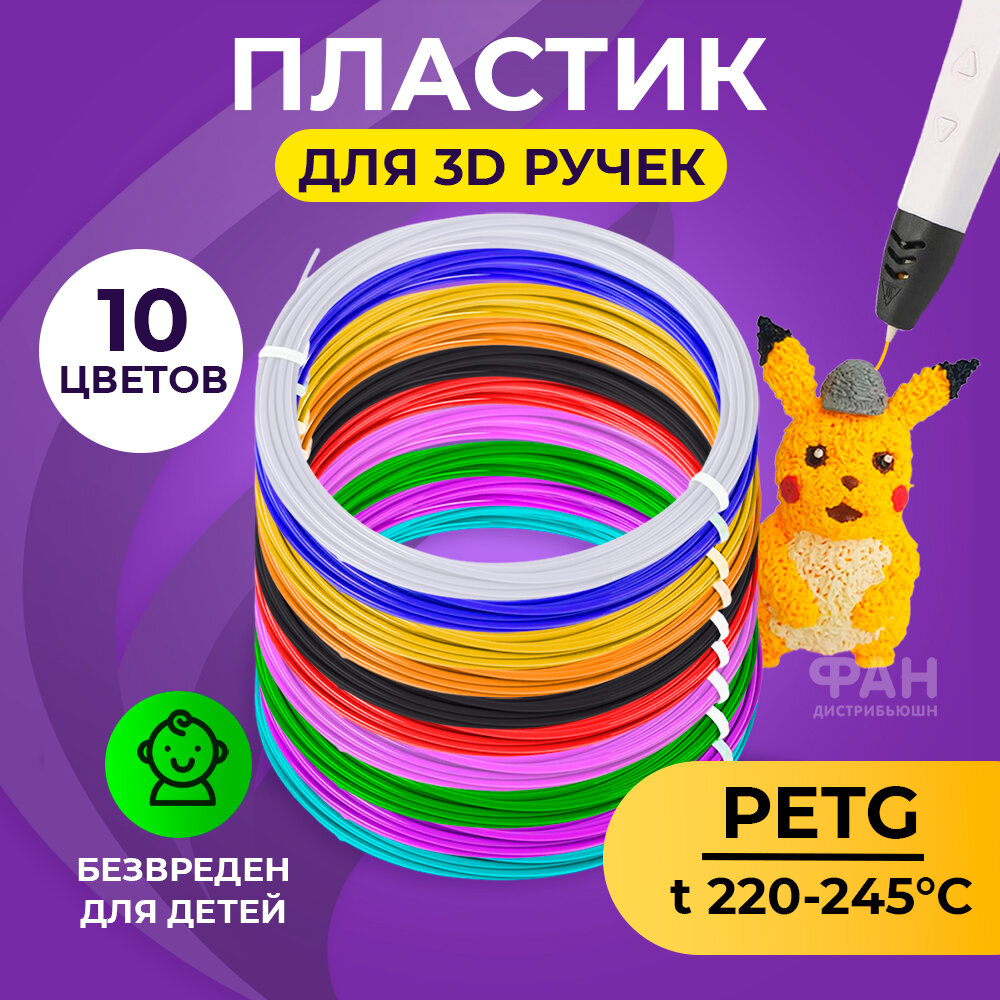 СохранитьКомплект PET-G пластика для 3д ручки 10 цветов по 5 метров интересное: