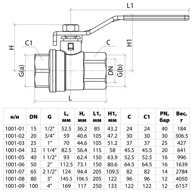 Кран Шаровой Полнопроходной Муфтовый Ручка-Рычаг Ду 32, 1001-04 AQUASFERA EURO