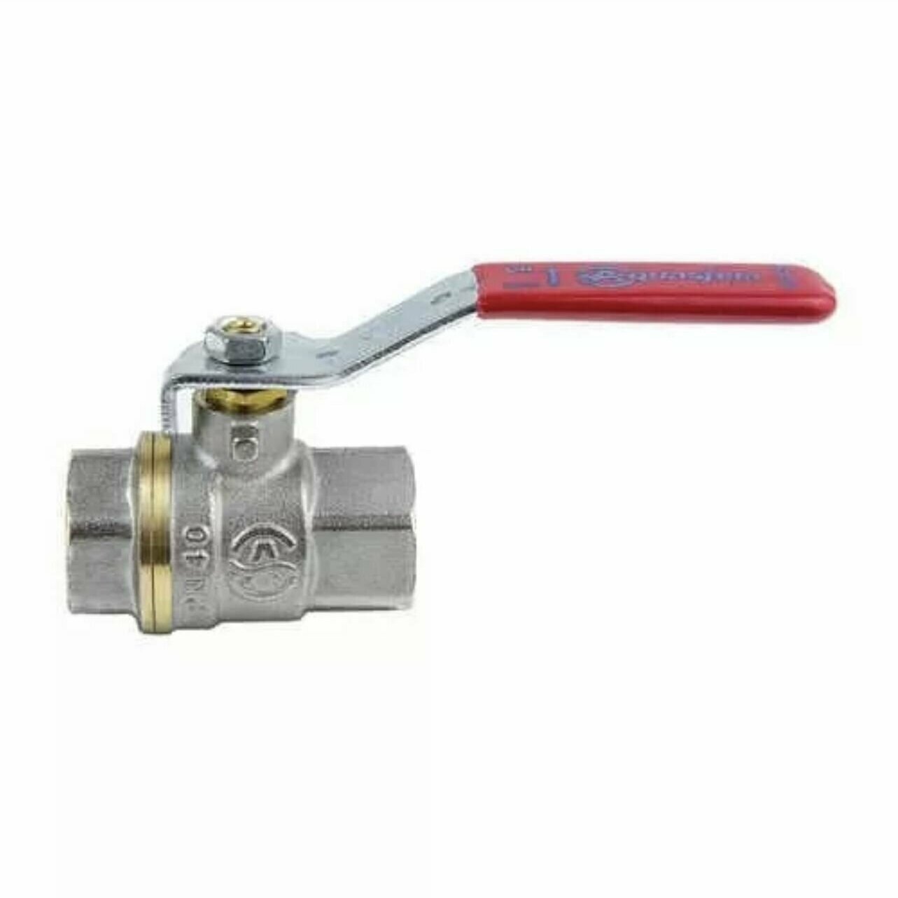 Кран шаровой латунь никель 1001 Euro Ду 25 Ру25 ВР полнопроходной рычаг красный Aquasfera 1001-03 .