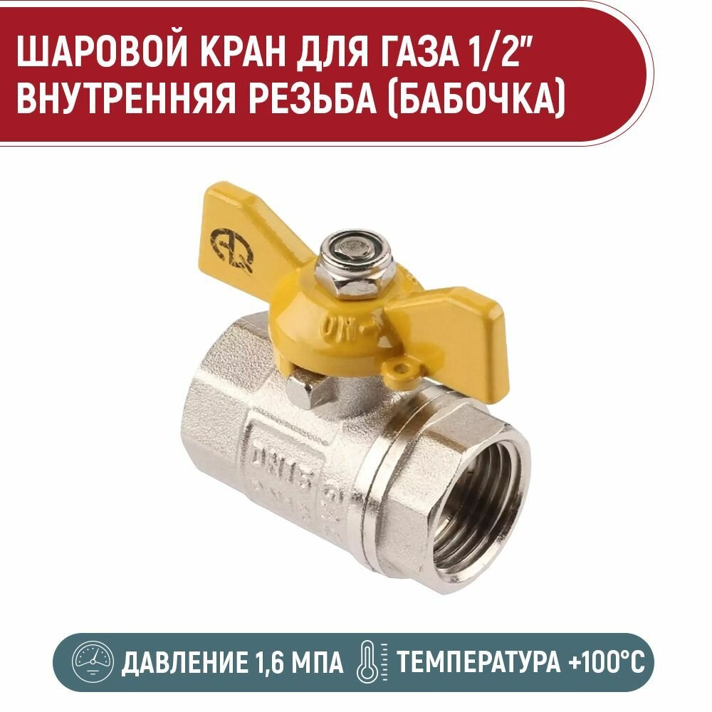 Кран шаровой для газа 1/2" вн-нар бабочка