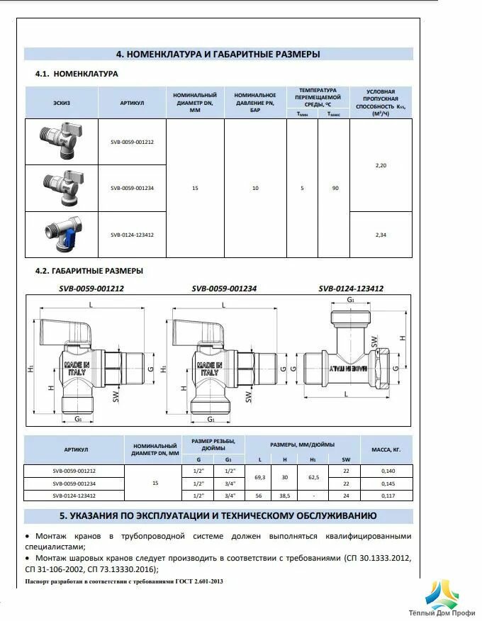 | Конструкция | стандартнопроходной |