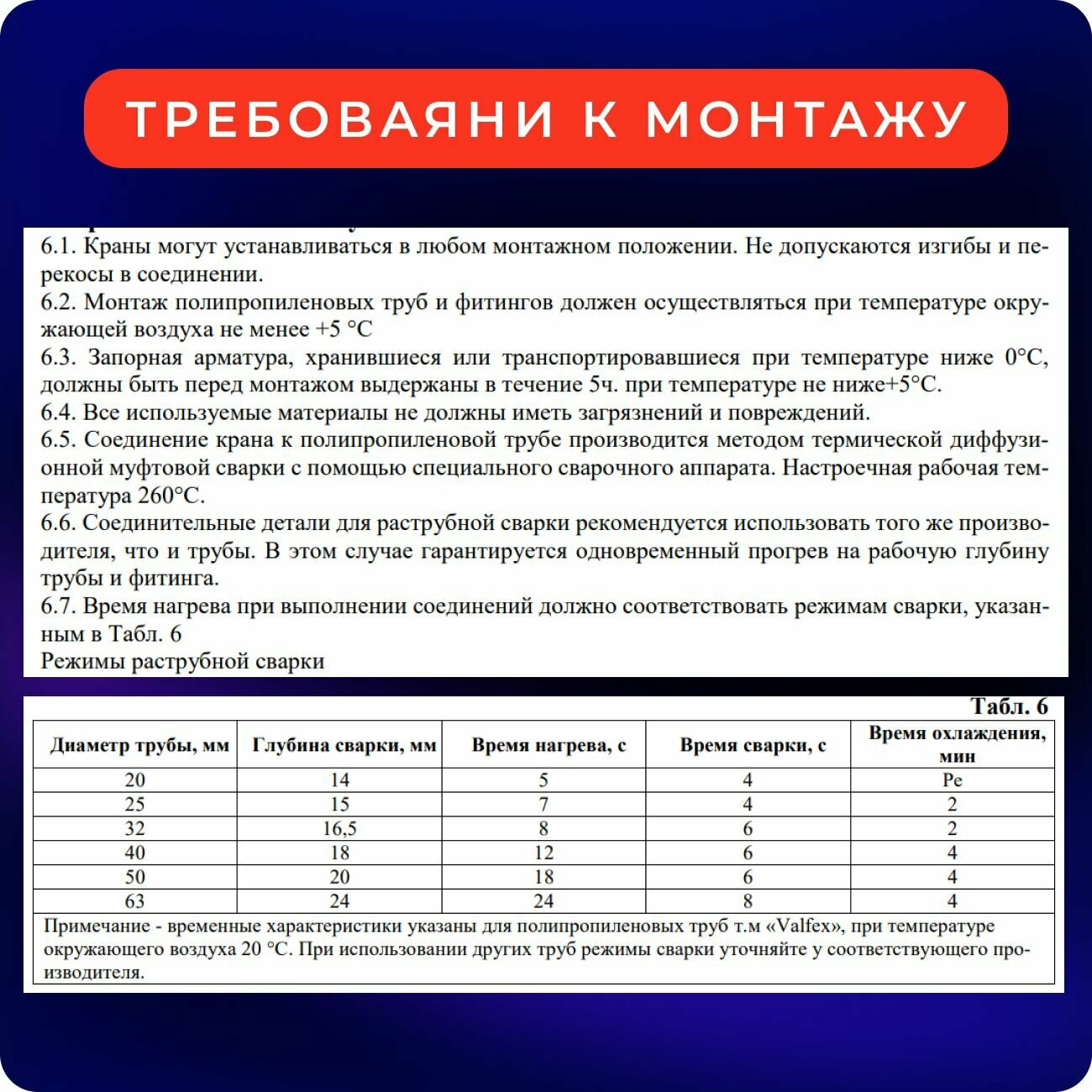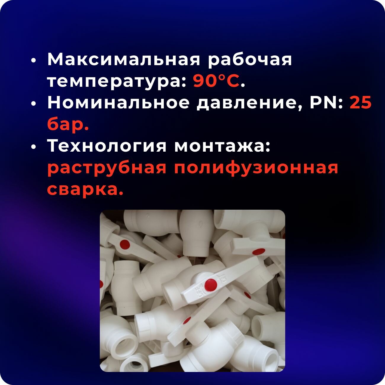 Кран шаровой VALFEX PP-R мет.шар 50мм белый (2/8)