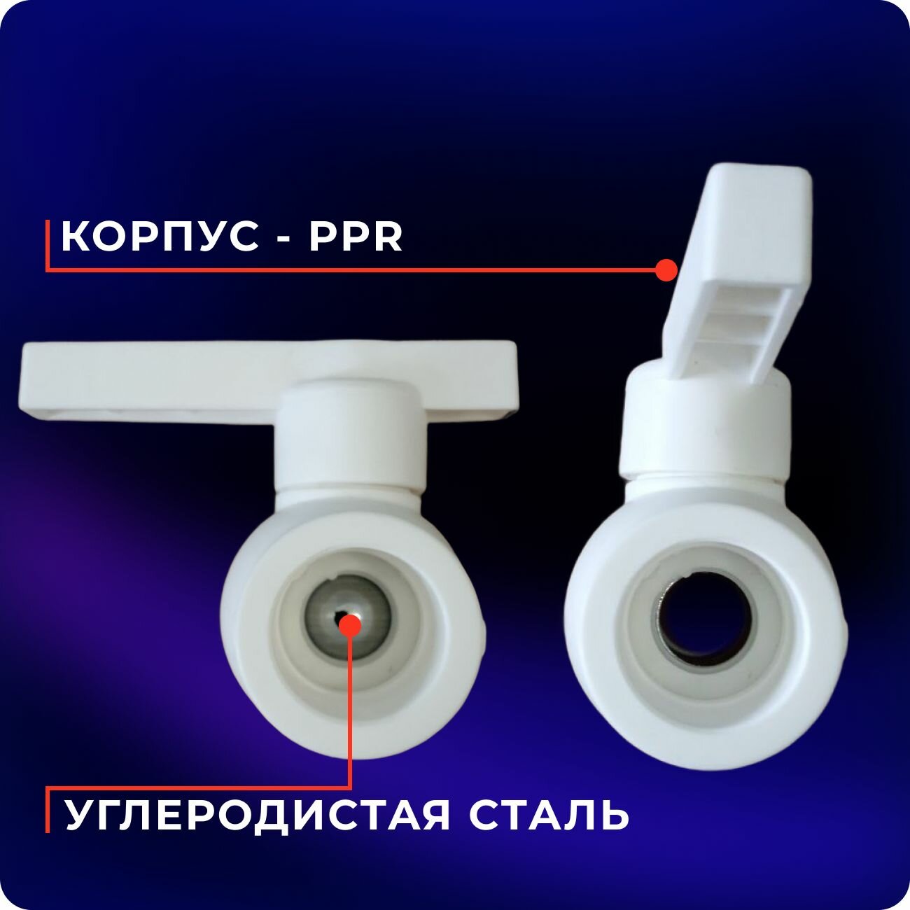 Кран шаровой PPR полипропиленовый диаметр 20 мм комплект 2 шт.