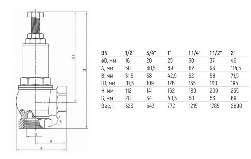 Клапан предохранительный угловой латунь Ду 15х15 Ру16 ВР G1/2"хG1/2" Рн=1...16бар 180С Benarmo интересное: