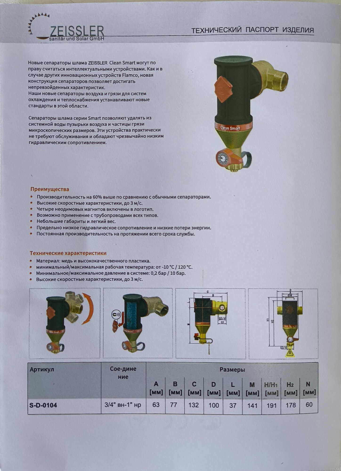 Сепаратор шлама Clean Smart 3/4 ( внутренняя) - 1" ( наружная ) ZEISSLER интересное:
