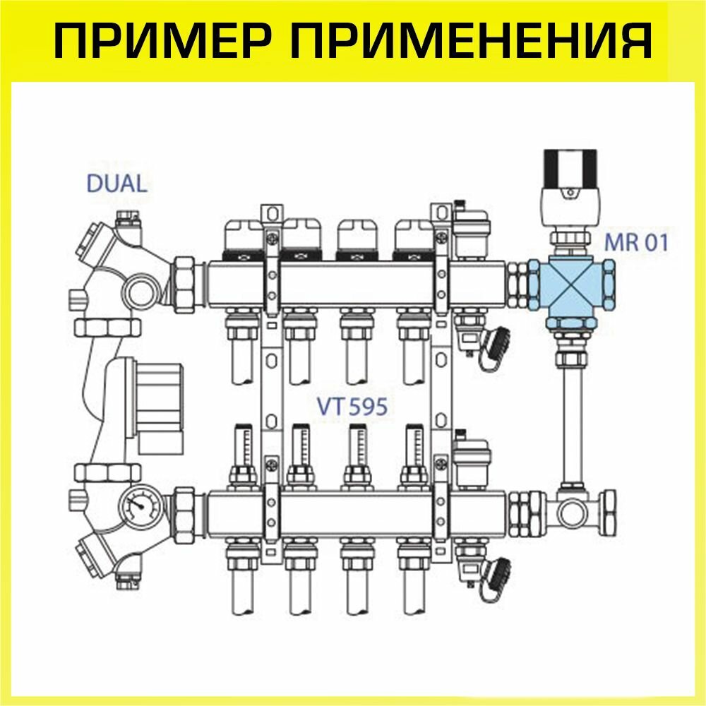 Трехходовой термостатический смесительный клапан Valtec VT. MR01. N.0603