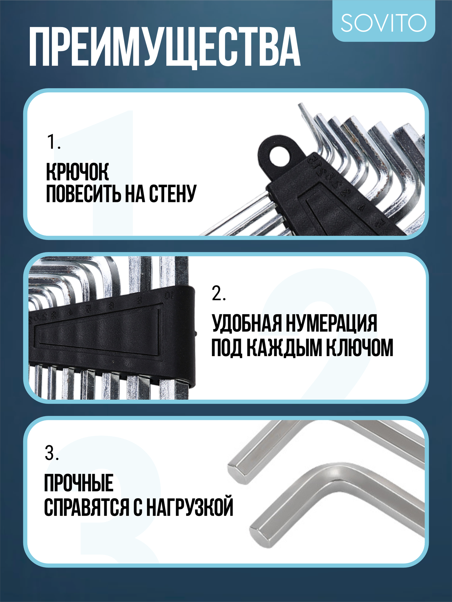 Набор шестигранных ключей (набор шестигранников), 9 штук, 1,5-10 мм. интересное: