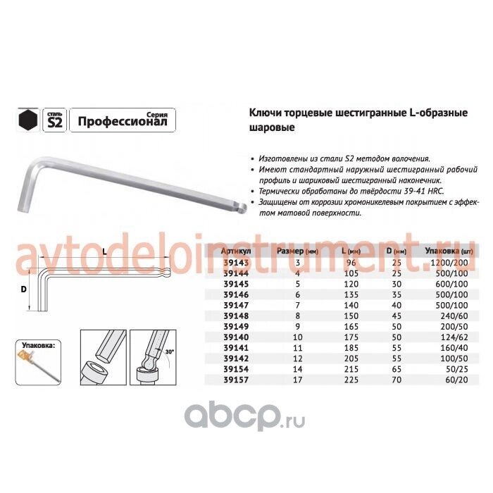 Ключ шестигранный, АвтоDело, 7мм. Профессионал с шаром удлинненный 39147 интересное: