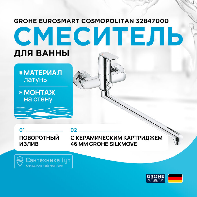 Смеситель для ванны Grohe Eurosmart Cosmopolitan универсальный, с длинным изливом, хром 32847000