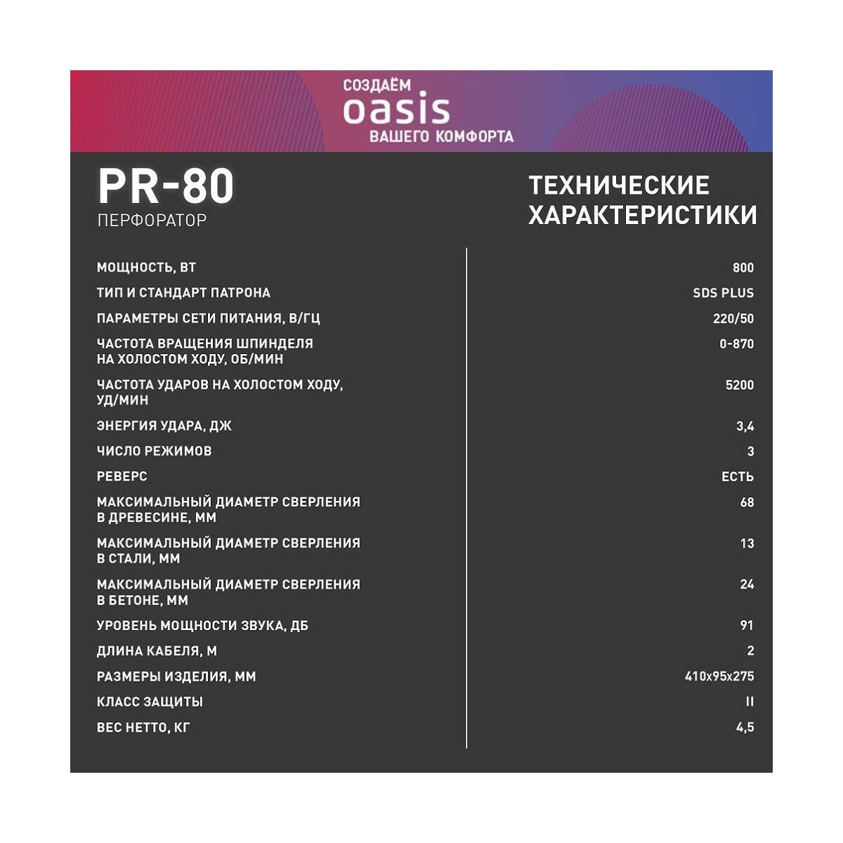 Ниже Вы можете прочитать отзывы на Перфоратор OASIS PR-80, ознакомится с подробными характеристиками, посмотреть интересные обзоры и фотографии на Перфоратор OASIS PR-80.