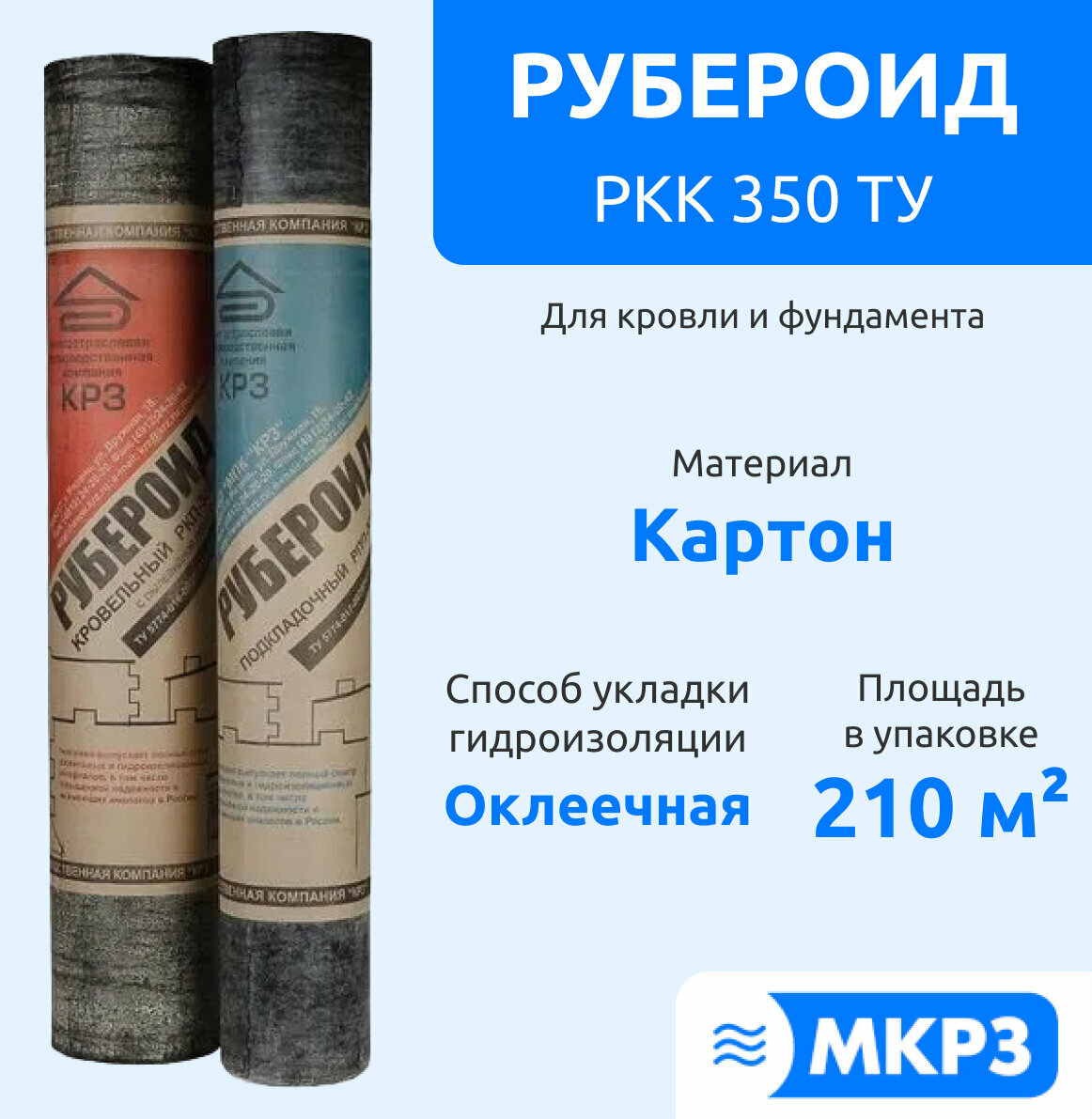Гидроизоляция рулонная "МПК КРЗ" Рубероид РКК 350 ТУ, С крупнозернистой посыпкой, Влагостойкий, 27 кг (10м*1м) интересное: