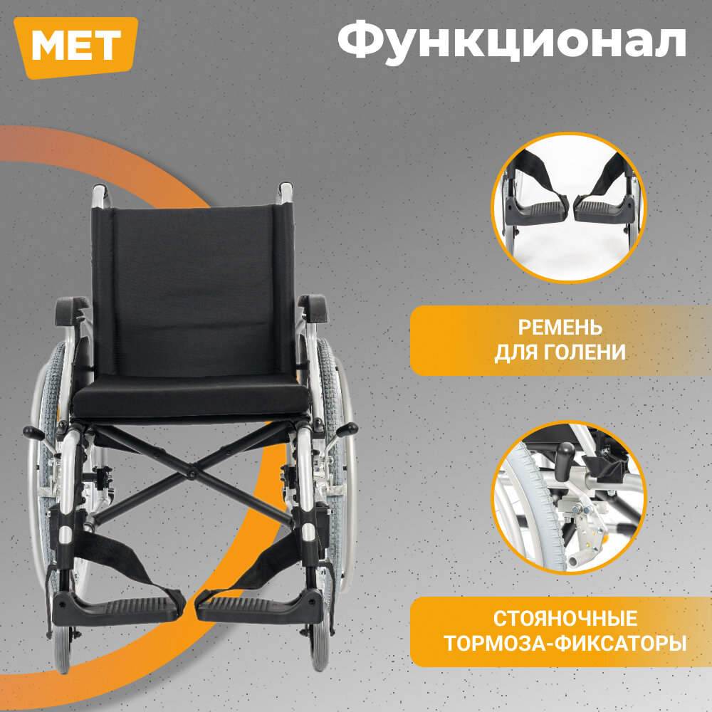 Инвалидная кресло-коляска МЕТ STABLE ширина сиденья 43 см. (черная) интересное: