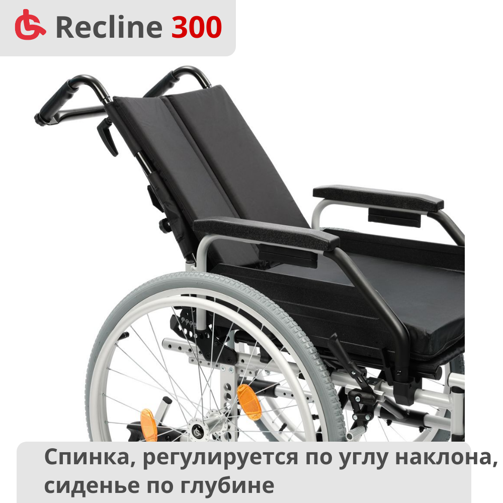 Кресло-коляска Ortonica Trend 50 / Recline 300 PP прогулочная инвалидная механическая регулируемая спинка ширина сиденья 38 см код ФСС 07-02-01