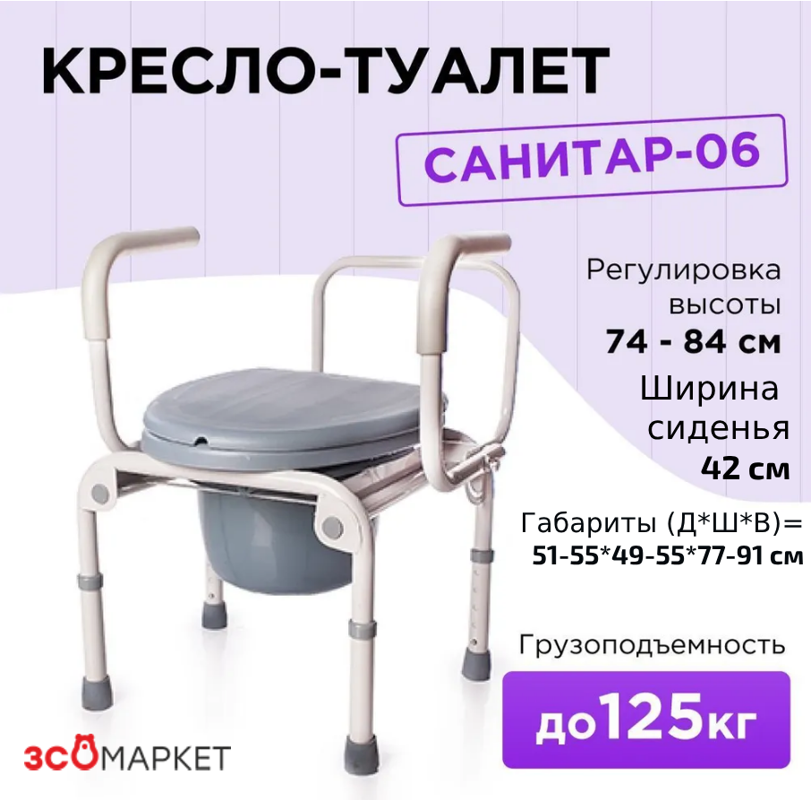Ниже Вы можете прочитать отзывы на Кресло туалет САНИТАР-06 с регулировкой высоты инвалидный медицинский стул с санитарным оснащением, ознакомится с подробными характеристиками, посмотреть интересные обзоры и фотографии на Кресло туалет САНИТАР-06 с регулировкой высоты инвалидный медицинский стул с санитарным оснащением.