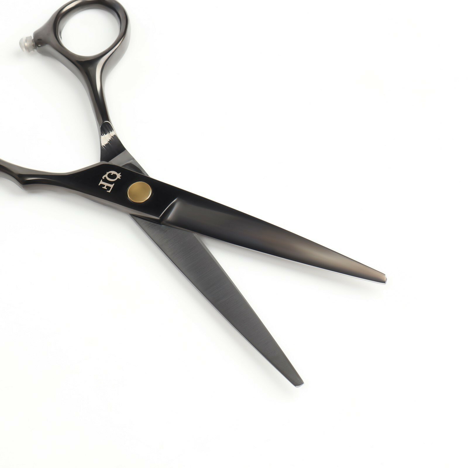 Ножницы парикмахерские с упором «Premium», загнутые кольца, лезвие — 6,5 см, цвет чёрный