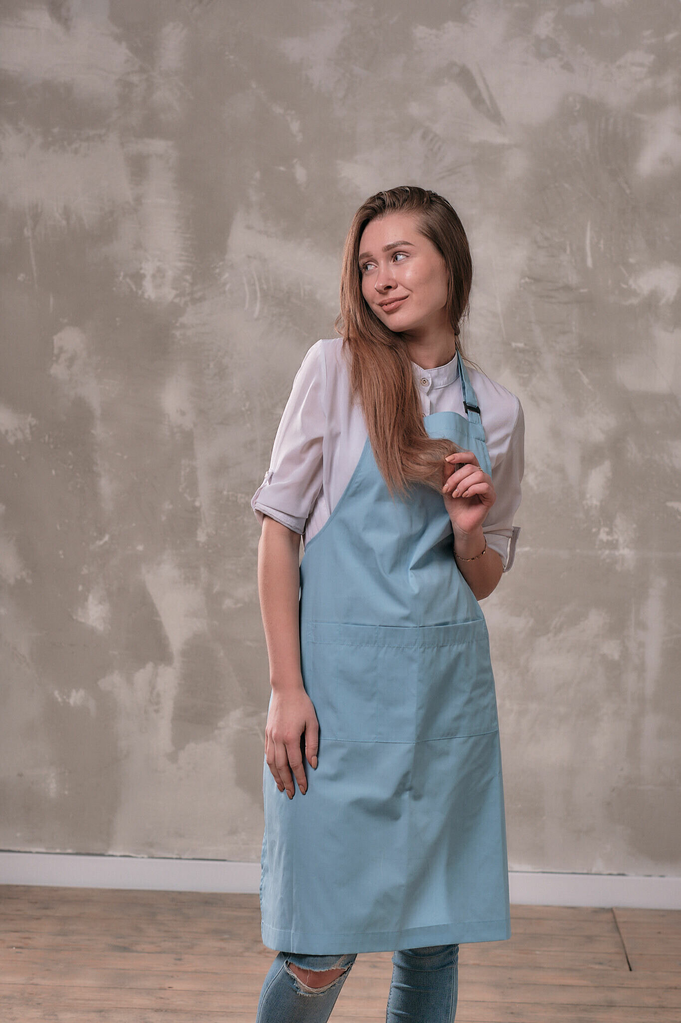 Купить Фартук мастера и парикмахера Медея голубой