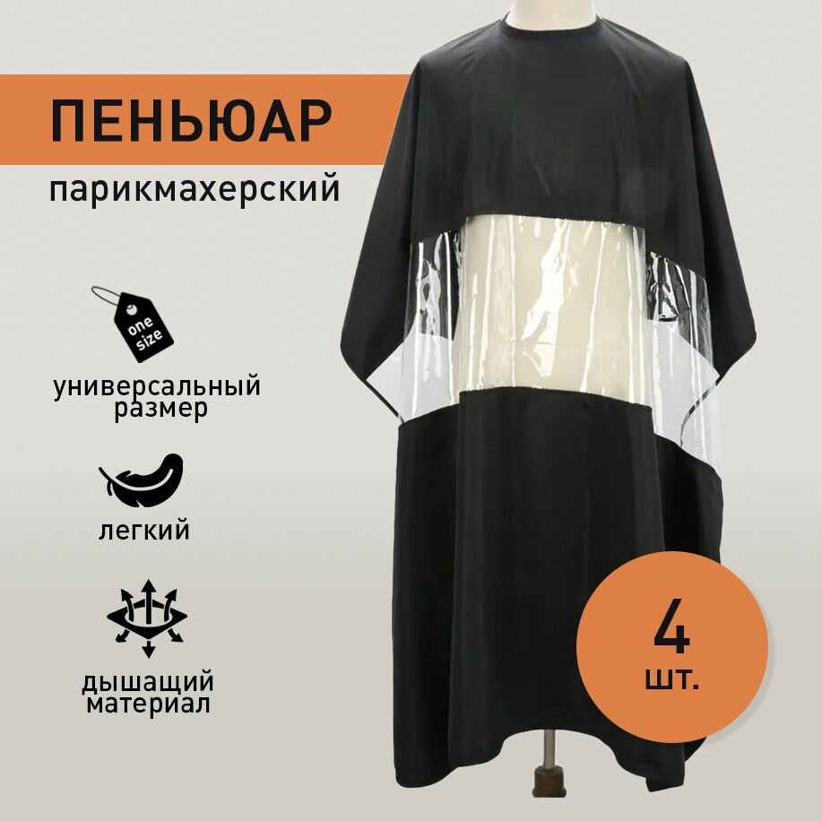Купить Парикмахерская накидка (пеньюар), 4 шт., с прозрачным окошком для телефона, черная