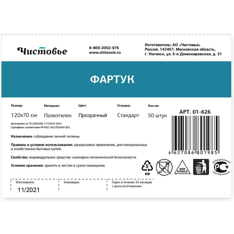 Чистовье - Фартук полиэтиленовый прозрачный (120х70см), 50 шт/уп арт 01-626 - интересное: