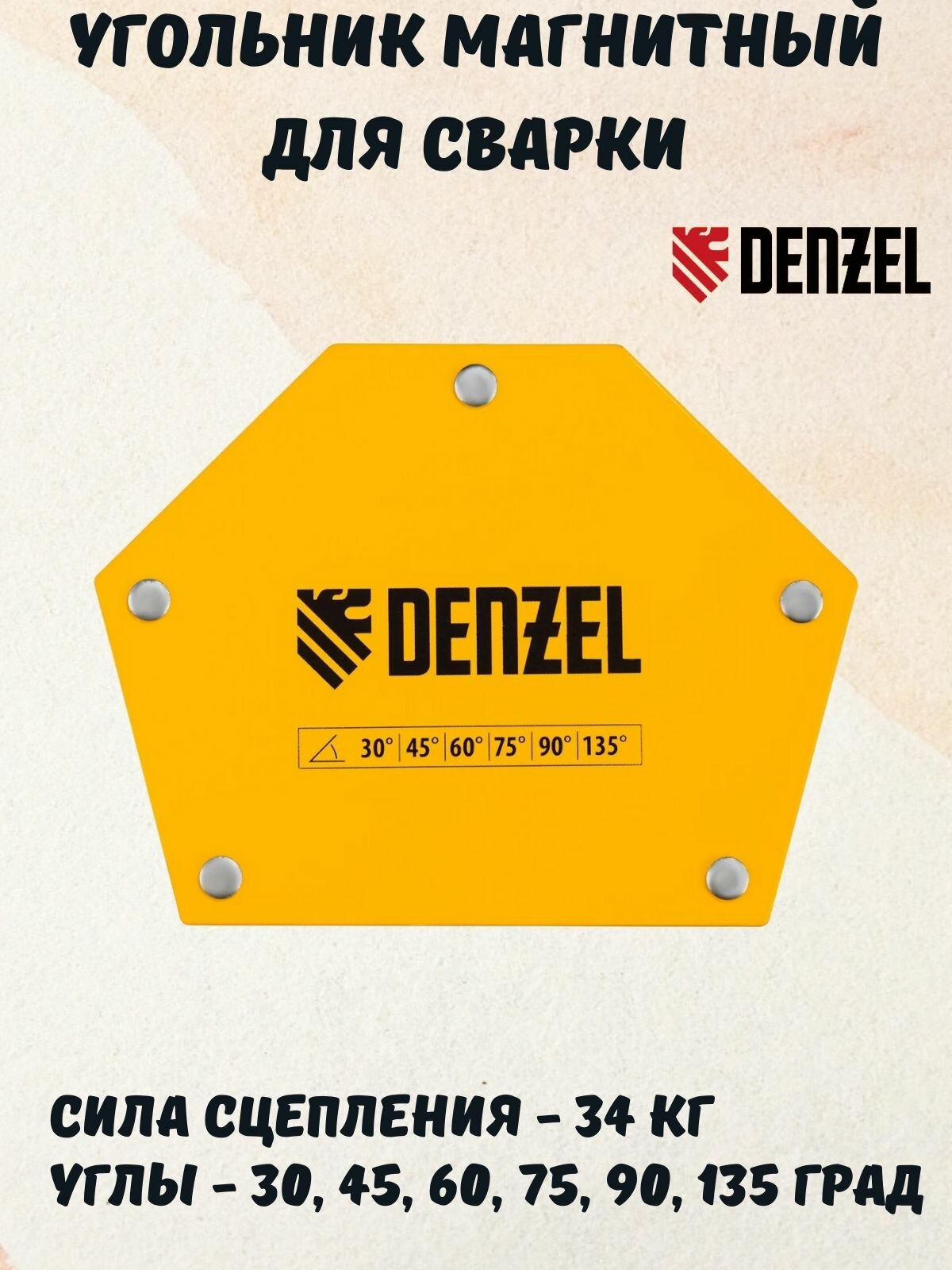 Угольник магнитный для сварки DENZEL усилие 75 LB, 30х45х60х75х90х135 градусов 97556 2 штуки интересное: