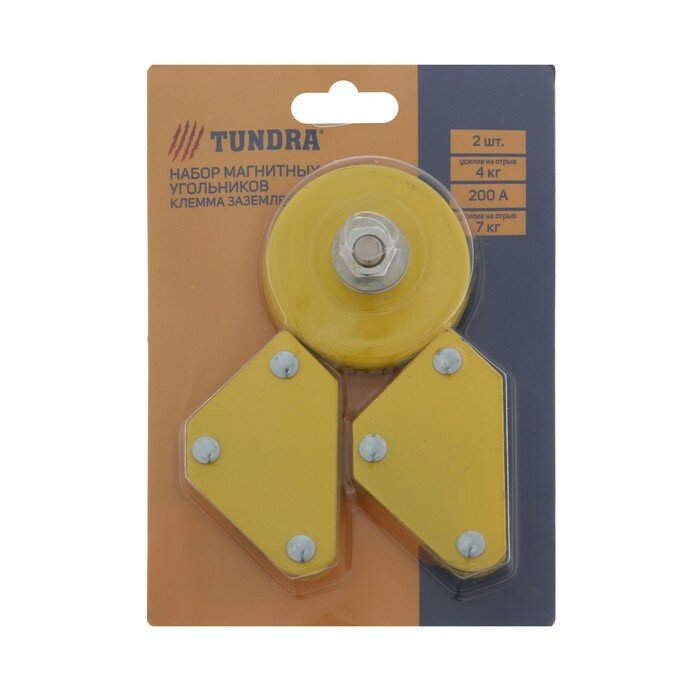 Набор магнитных угольников для сварки тундра, 45,90,135°, 4 кг, 2 шт. + клемма, 200 А, 7 кг./В упаковке шт: 1 интересное: