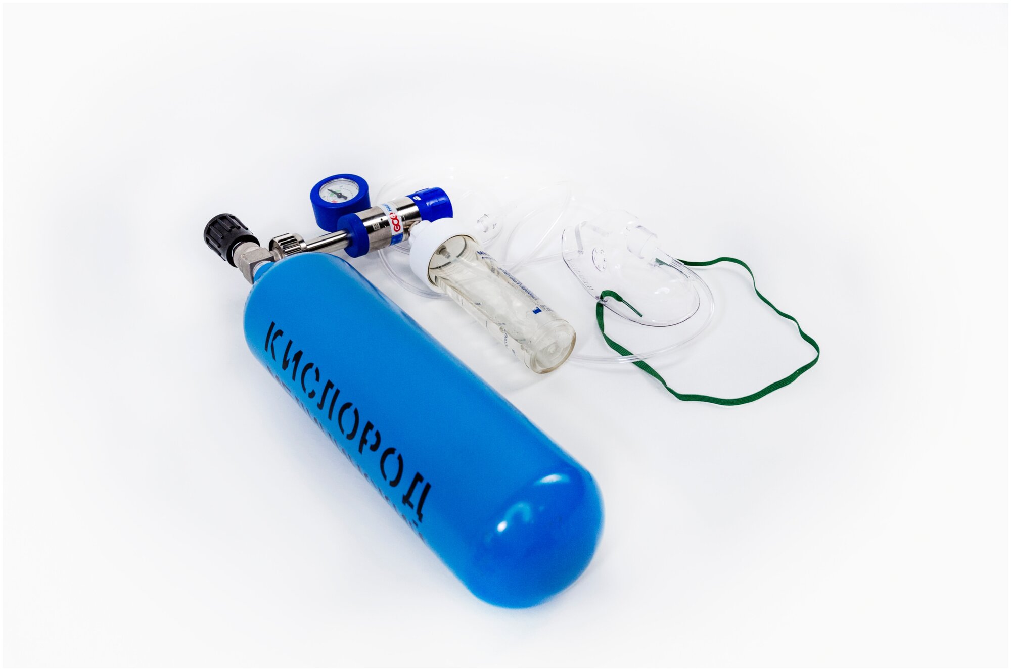 Кислородный баллон с маской, регулятором и увлажняющим баллоном - 150 литров. Время беспрерывного дыхания 150 минут интересное: