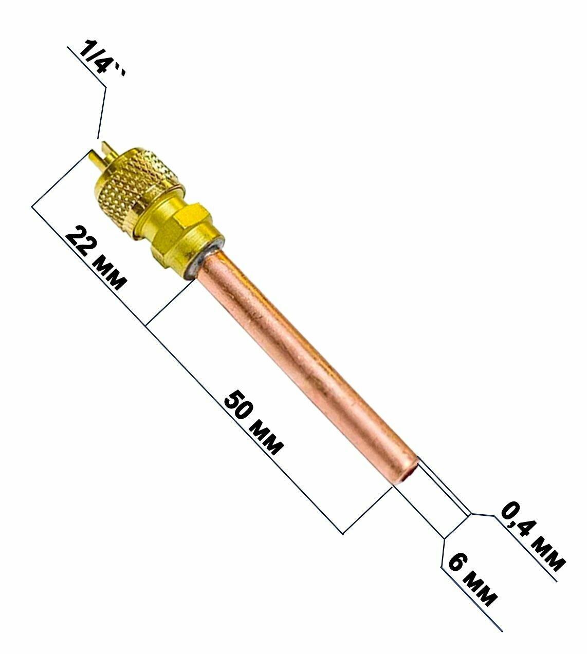 Купить Клапан Шредера 1/4 трубка 0,4 мм длина 50мм общая длина 72мм - комплект 10 штук / заправочный клапан / заправочный штуцер