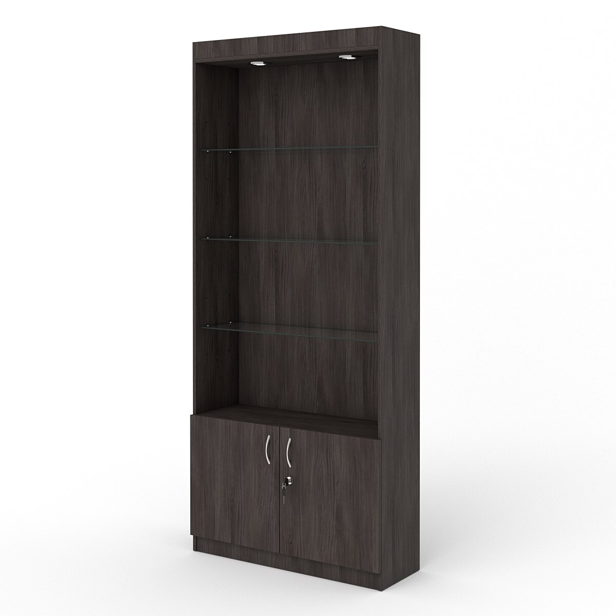 Витрина стеклянная "прима классик" №33 (с дверками, задняя стенка - стекло), Черный 90 x 30 x 209 см