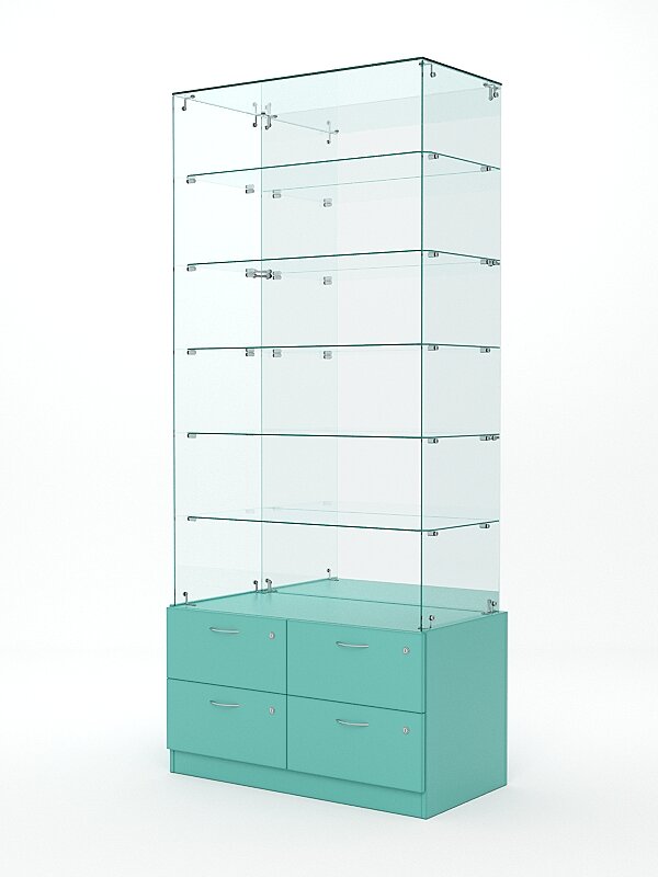 Витрина стеклянная "хрусталь" №607 (без дверок, задняя стенка - зеркало), Тиффани Аква 90 x 45 x 202 см интересное: