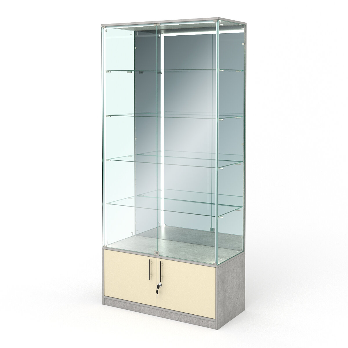 Витрина №300-2 (без дверок, задняя стенка - стекло), Крем Вайс 90 x 30 x 210 см