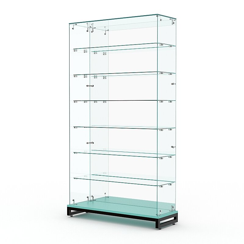 Витрина стеклянная "прима классик" №33 (с дверками, задняя стенка - стекло), Черный 90 x 30 x 209 см