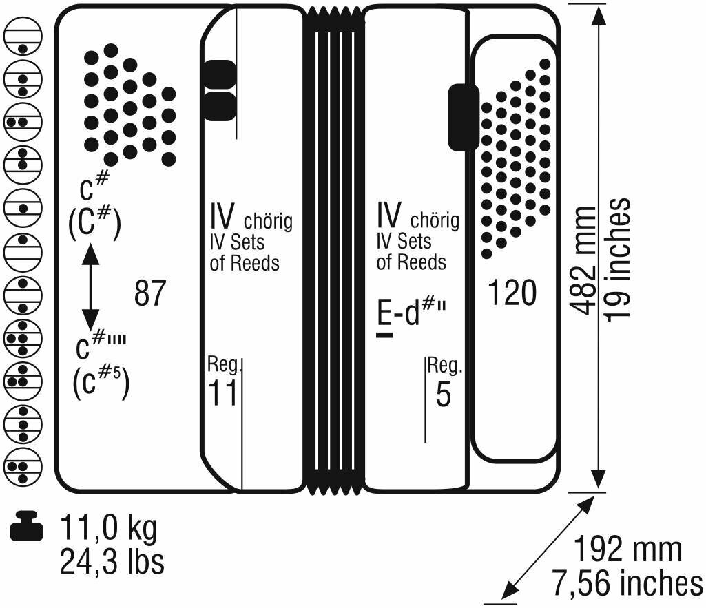 Romance874-IV-120/87-BK Romance 874 Аккордеон кнопочный 87/120/IV/11/5, черный, Weltmeister интересное: