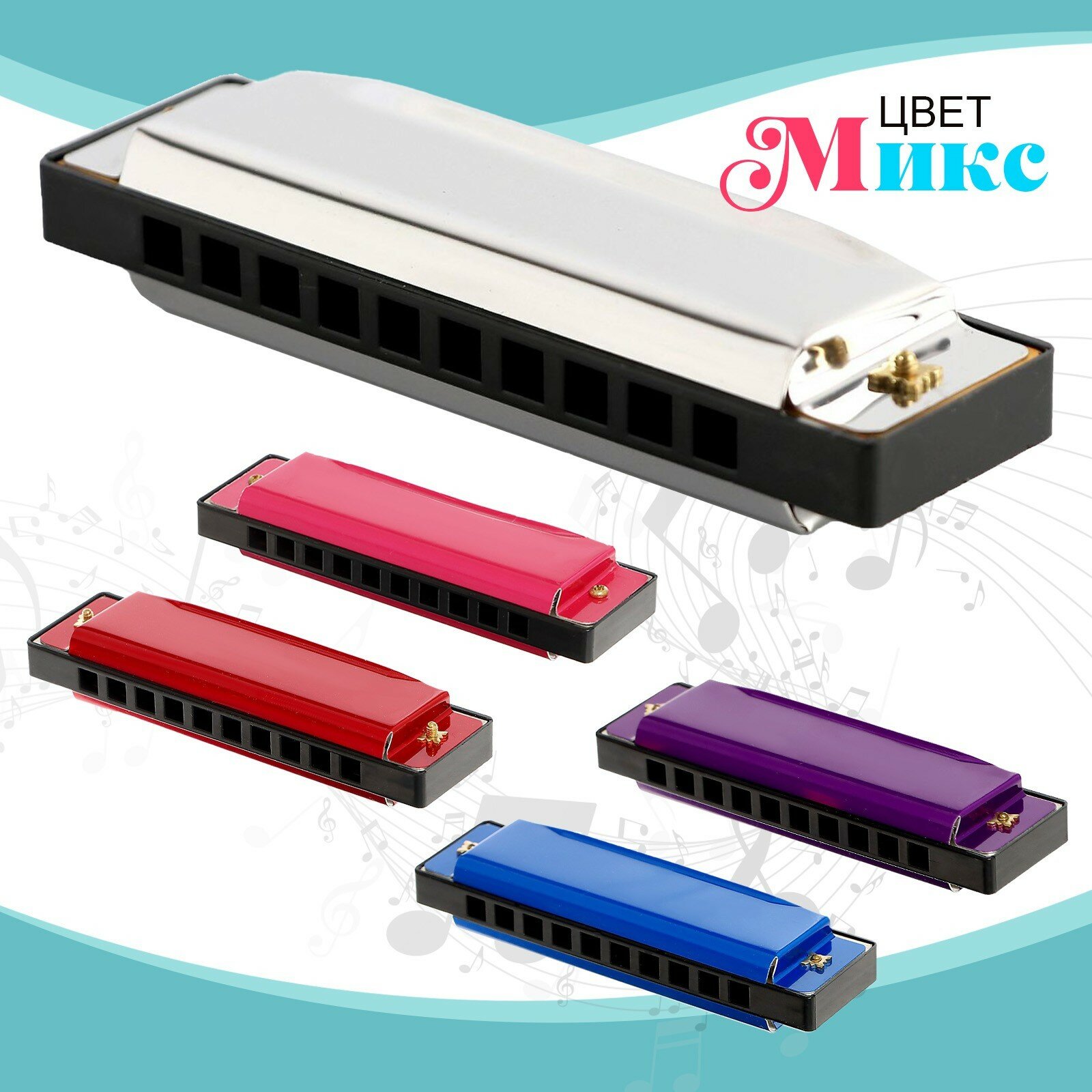 Купить Губная гармошка «Гармоника», с металлическим корпусом и футляром, цвета МИКС