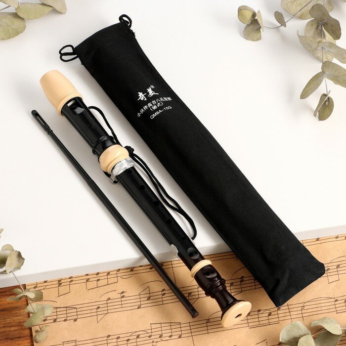 Блокфлейта , 8 отверстий, черный чехол, шомпол, 30 см интересное: