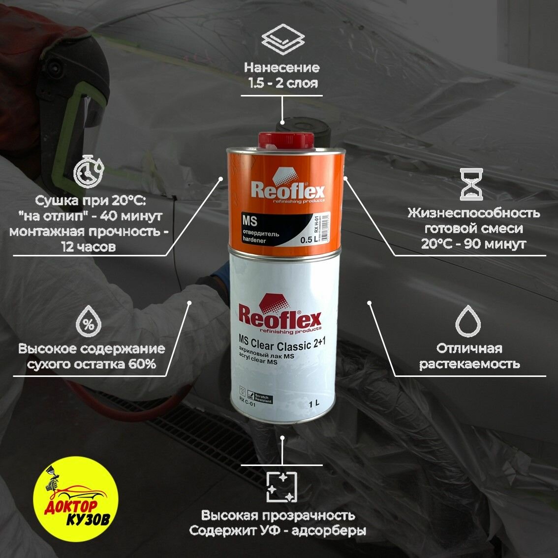REOFLEX RX C-01/1000 Лак 2К MS 2+1 1л акриловый REOFLEX + отвердитель RX H-01/500