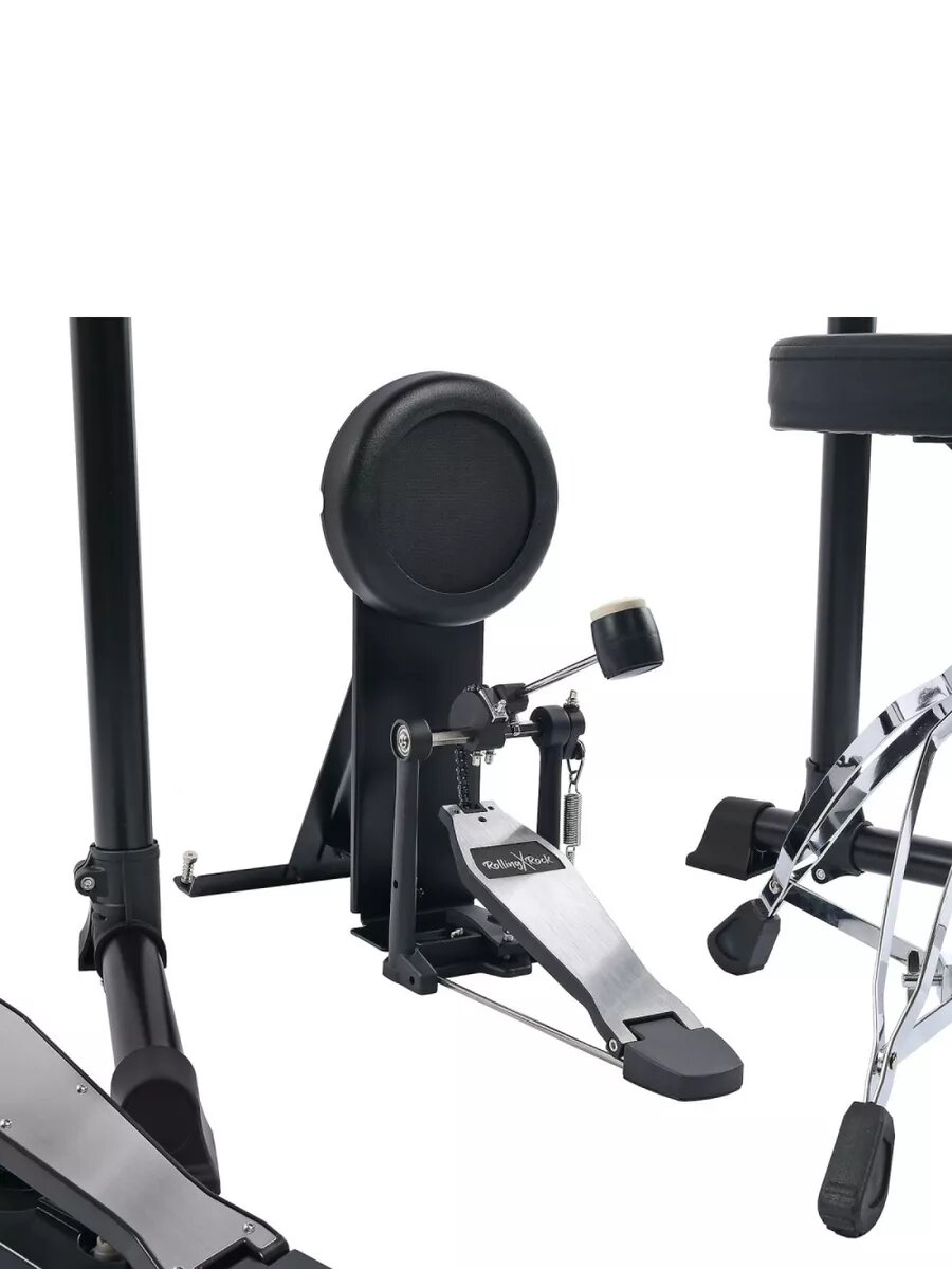Электронная ударная установка Rolling Rock MT-200A черный цвет с наушниками, барабанными палочками и стулом барабанщика в комплекте интересное:
