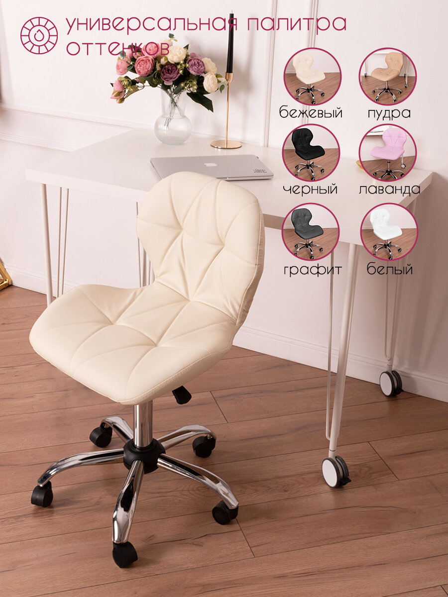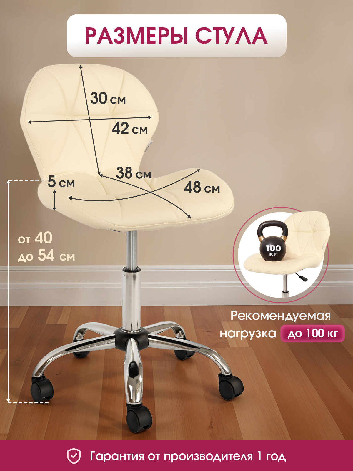 Стул мастера и клиента со спинкой Cosmotec Ракушка, на колесах, Бежевый интересное: