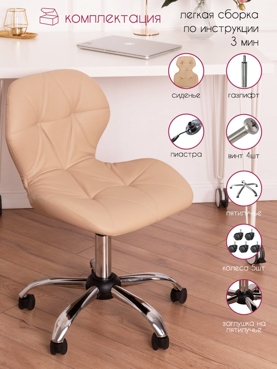 Купить Стул мастера и клиента со спинкой Cosmotec Ракушка, на колесах, Пудра