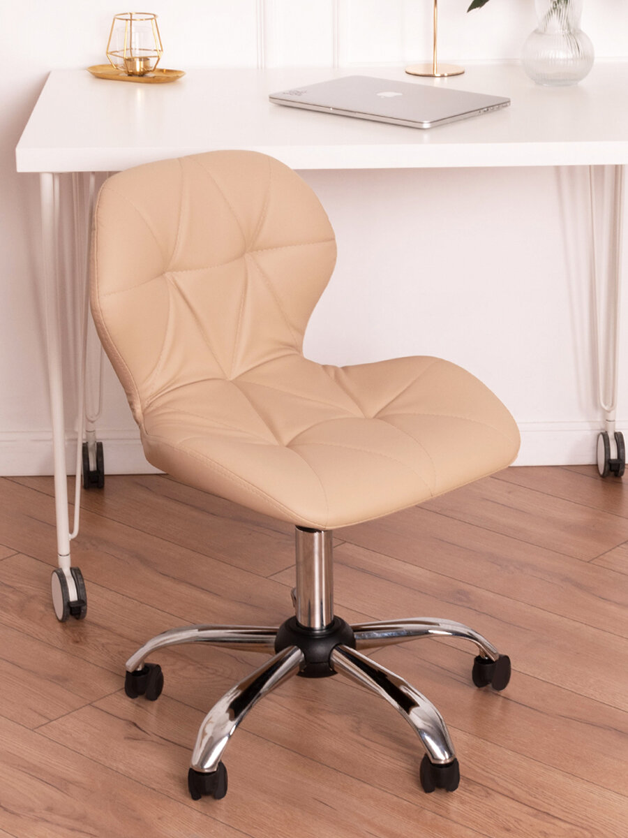 Стул мастера и клиента со спинкой Cosmotec Ракушка, на колесах, Бежевый