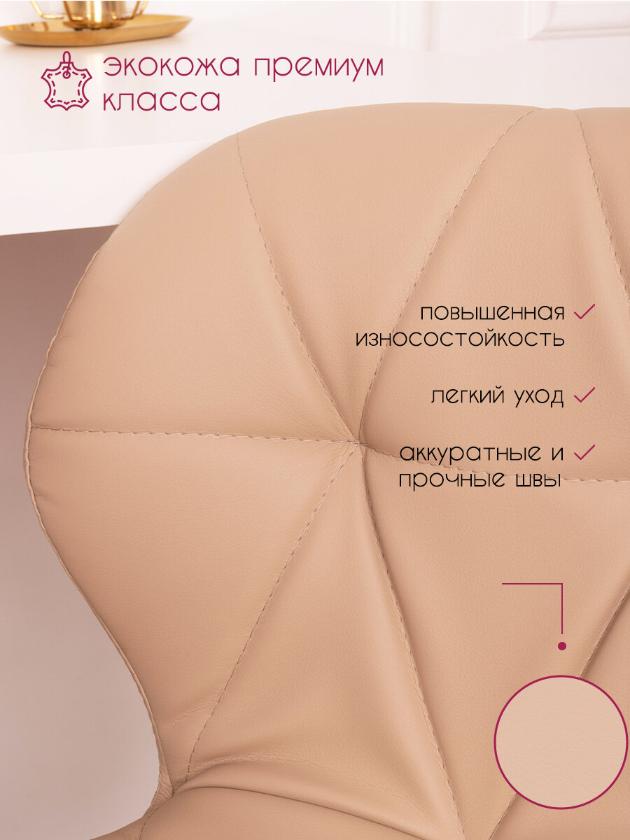 Стул мастера и клиента со спинкой Cosmotec Ракушка, на колесах, Пудра интересное: