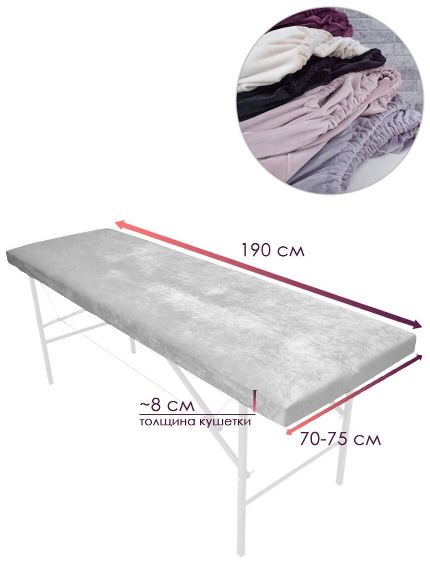 Чехол на кушетку 190 на 70 - 75, чехол на косметологическую кушетку или массажный стол, мягкий велюровый на резинке многоразовый, аметистовый