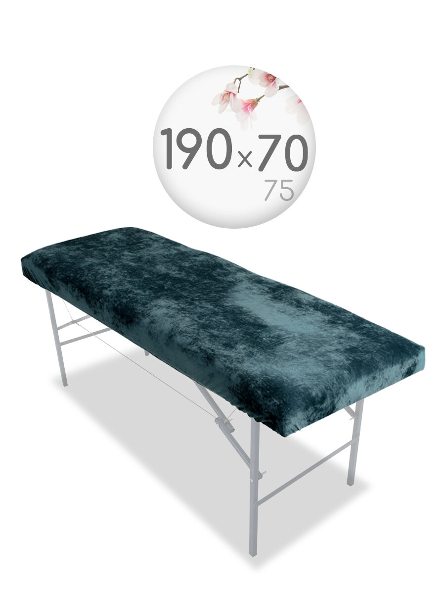 Чехол для кушетки и массажного стола, велюр, 190x70-75 см, темно-бирюзовый