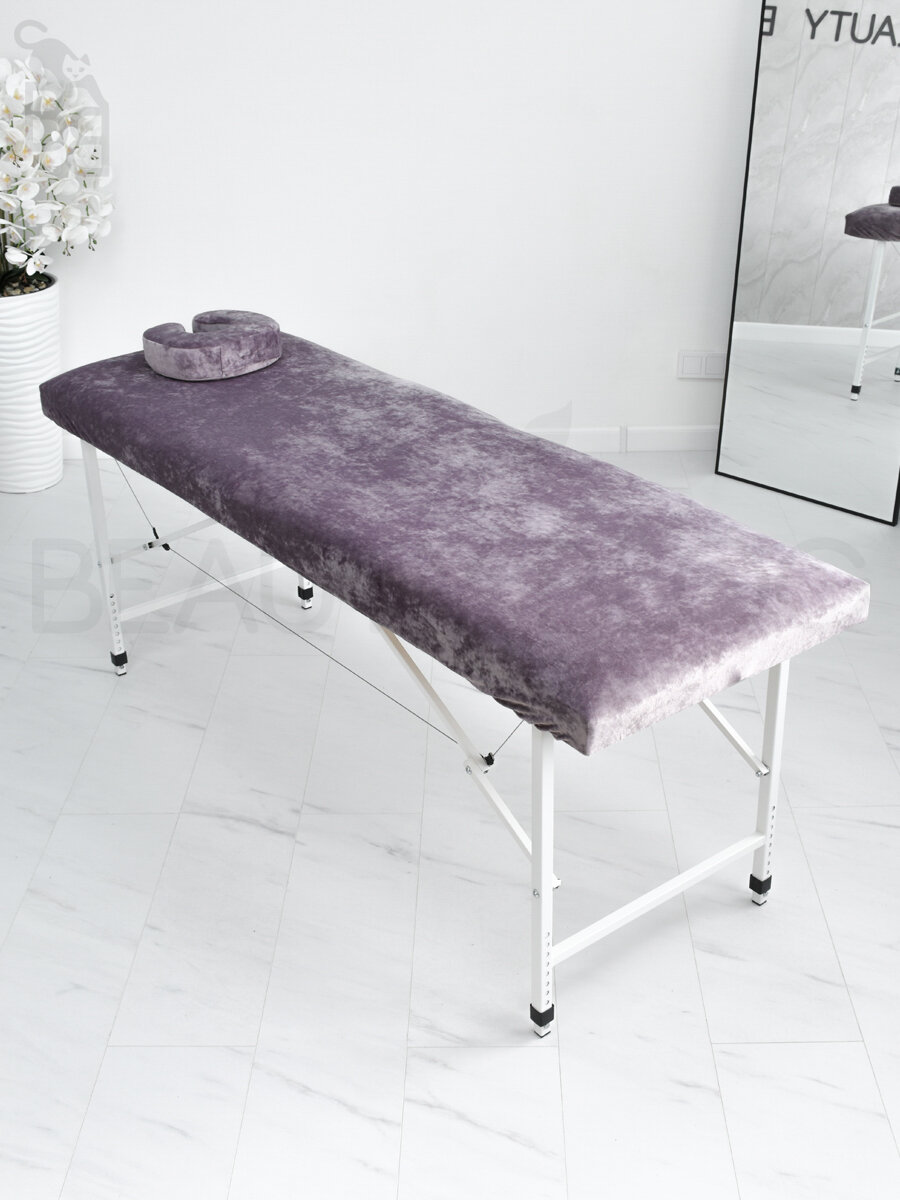 Чехол для кушетки и массажного стола, велюр, 190x70-75 см, лавандовый