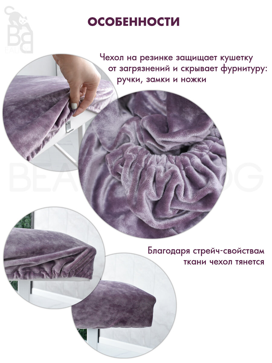 Чехол для кушетки и массажного стола, велюр, 190x70-75 см, фиолетовый