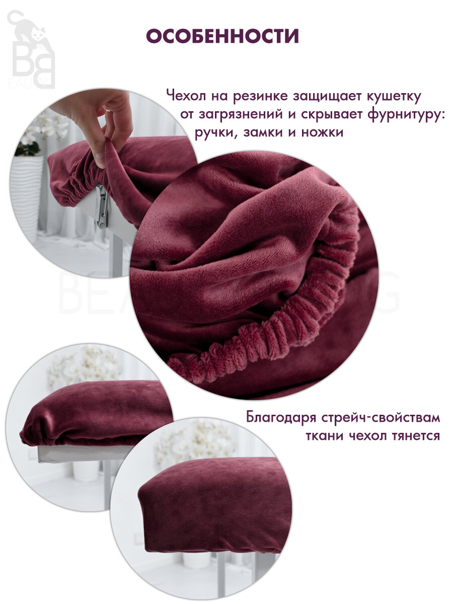 СохранитьЧехол на кушетку 190 на 70 - 75, чехол на косметологическую кушетку или массажный стол, мягкий велюровый на резинке многоразовый, винный интересное: