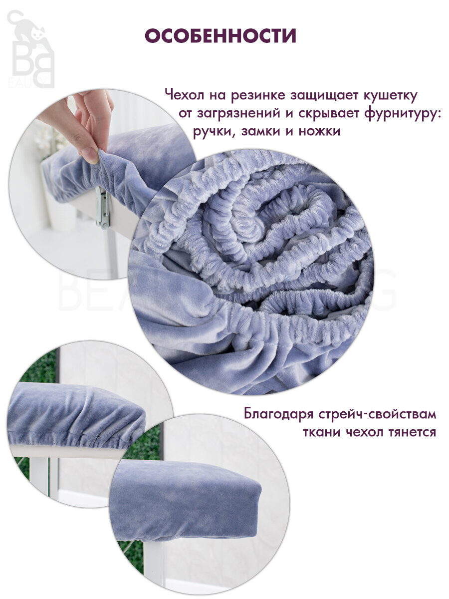 Чехол на кушетку 190 на 70 - 75, чехол на косметологическую кушетку или массажный стол, мягкий велюровый на резинке многоразовый, колокольчик
